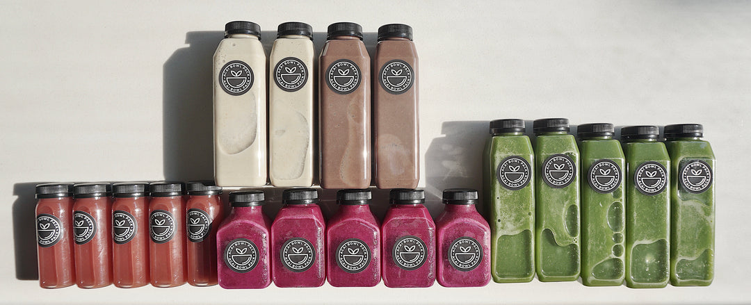 Green juice, fresh orange juice, protein shakes, wellness boosts, and double shots have been added to the menu! These drinks combine perfectly with our bowls to give you the boost and benefits your body needs.